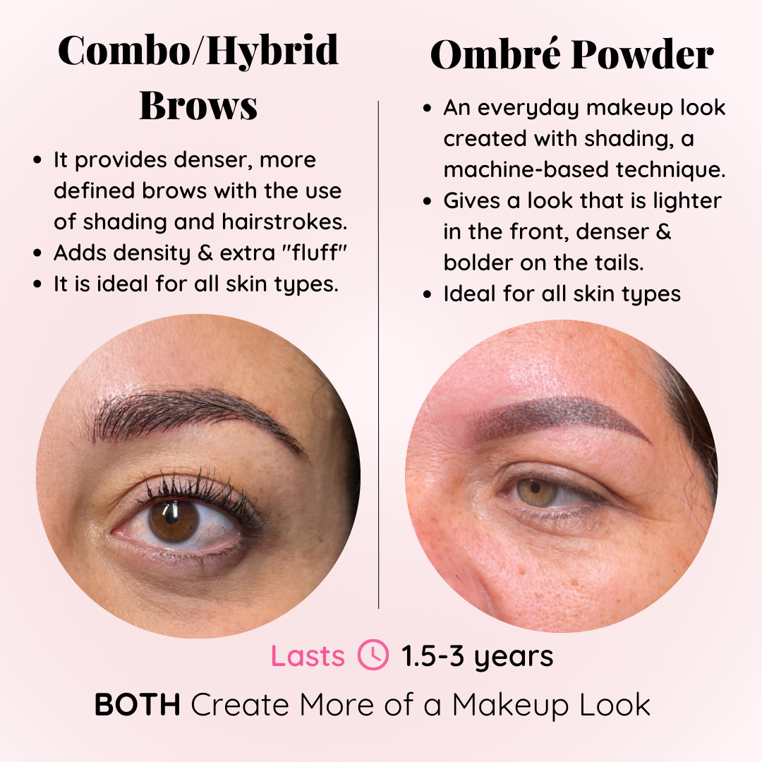 Powder brows offer a soft, shaded look for a fuller finish, while microblading creates natural, hair-like strokes for a more defined appearance.💄